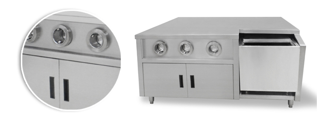| 这型号配备三个杯桶用于放置热饮设备和热保温设备,如开水机,咖啡机等。 |